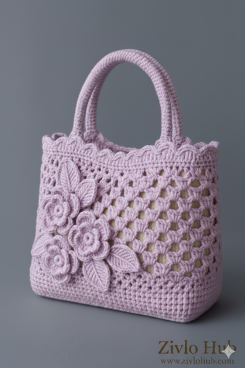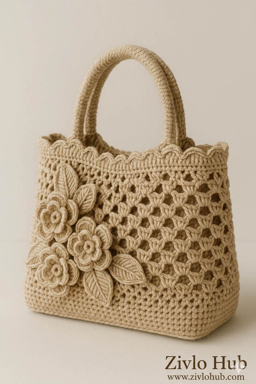 Handmade Floral Crochet Tote Bag for Women – Eco-Friendly Boho Shoulder Bag
